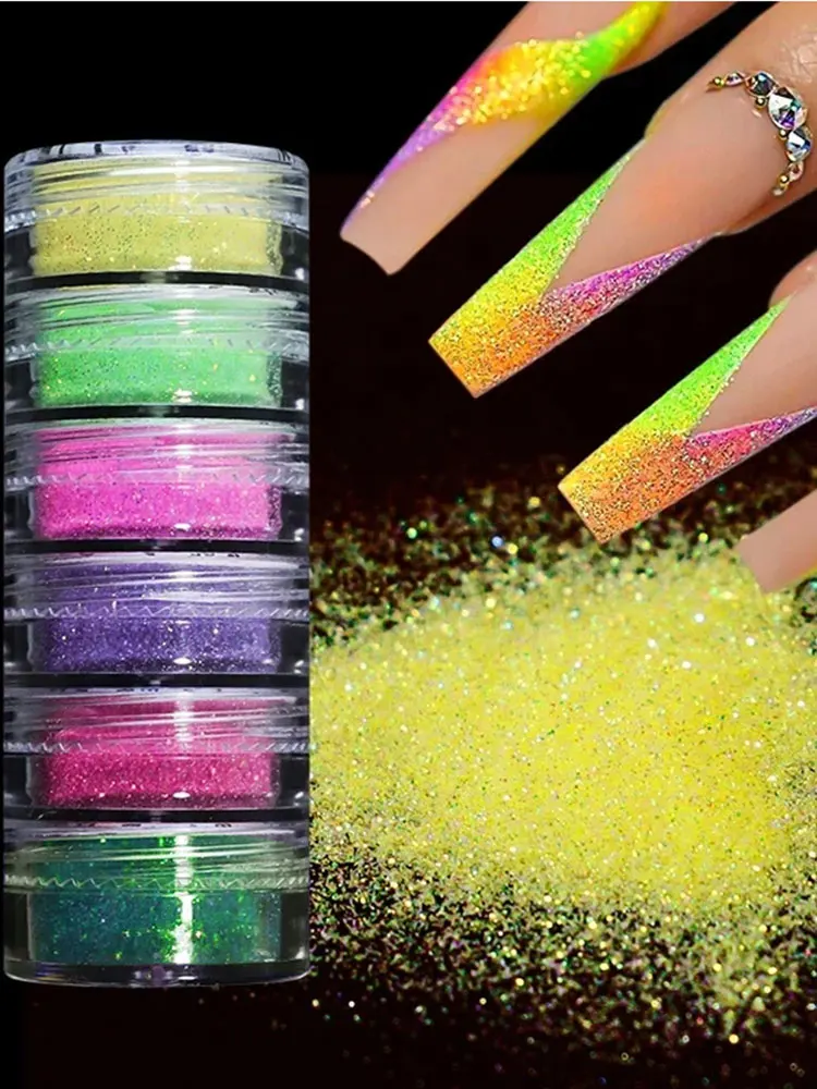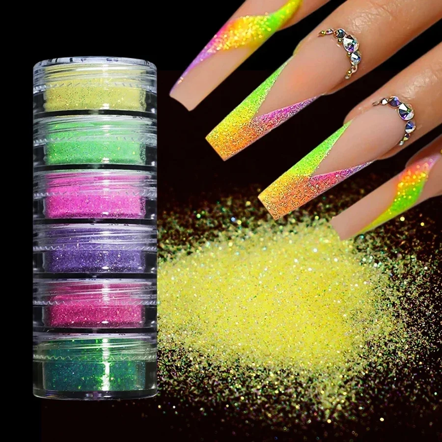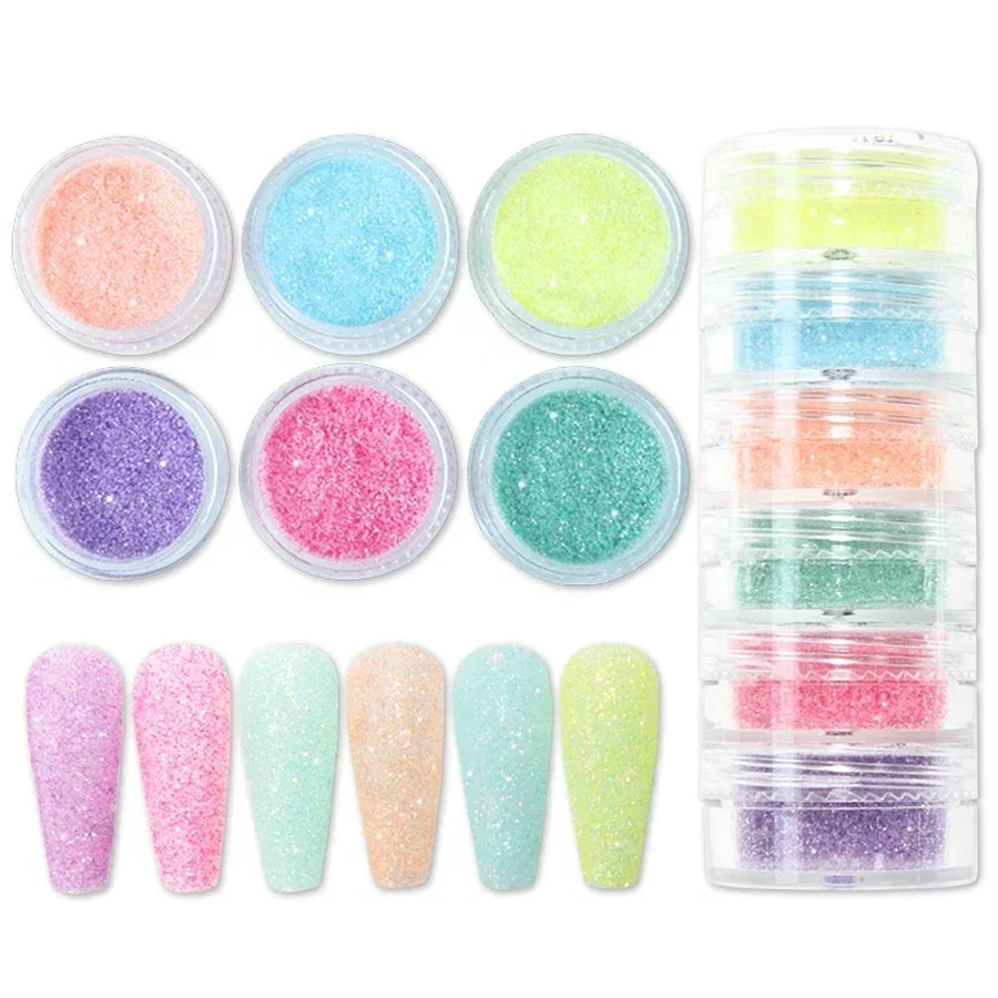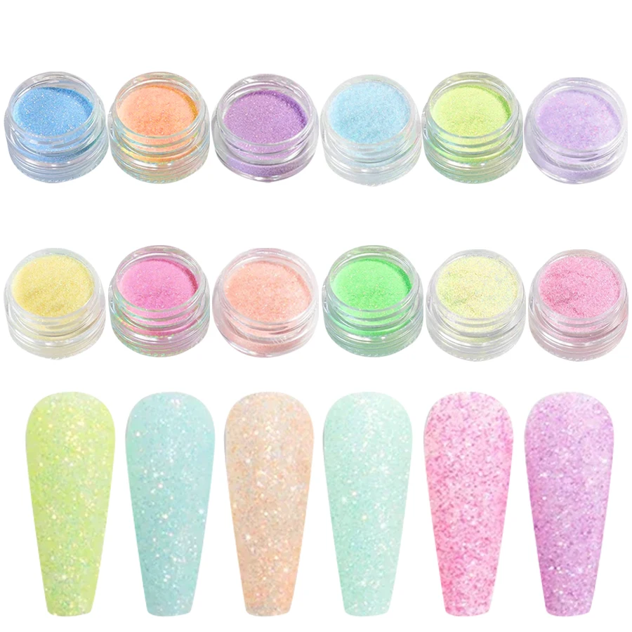 12 Colors Nail Powder Nail Glitter Shining Sugar Colorful Powder Candy Coat Sparkly Pigment Nail Charms Nail Art Decoration