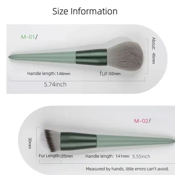 2. Elevate your makeup routine with this 13-piece green makeup brush set. The oval brush design and hypoallergenic polyester bristles provide a flawless finish every time, making it ideal for all skin types. Packaged in a chic cloth case, this set is perfect for on-the-go touch-ups.