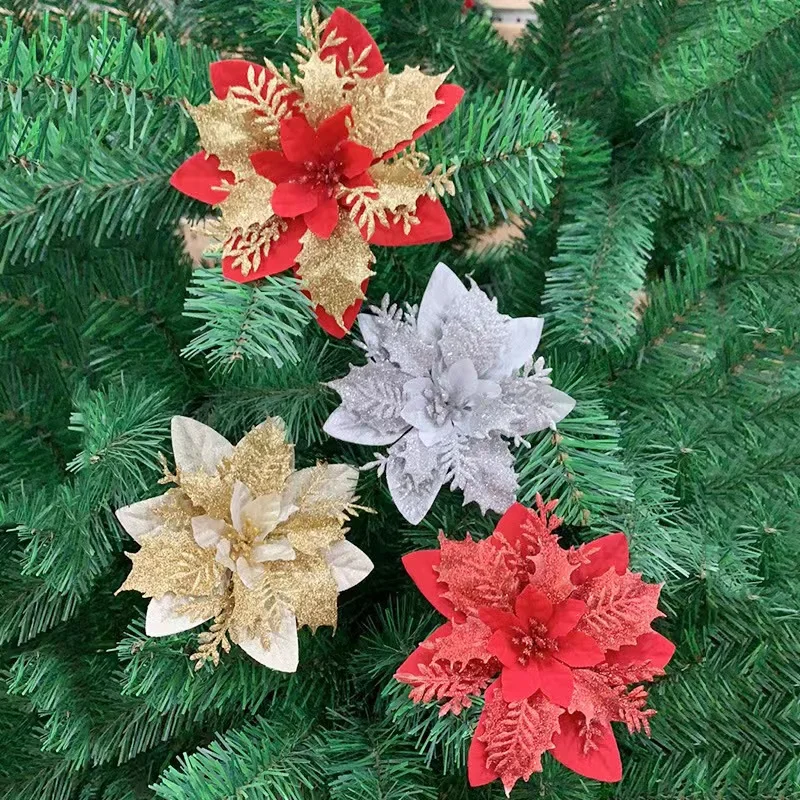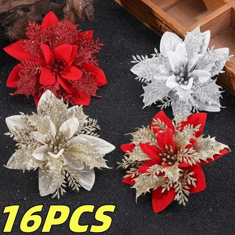 5.Dazzling glittery Christmas flower ornaments with rich details and seasonal colors are inspired by the real poinsettia enlivening Christmas decorationWide Applications, you can use them in holiday centerpieces, mantle decoration, crafting projects, floral arrangements, suitable for decorating Christmas trees, wreaths, rattan and so on