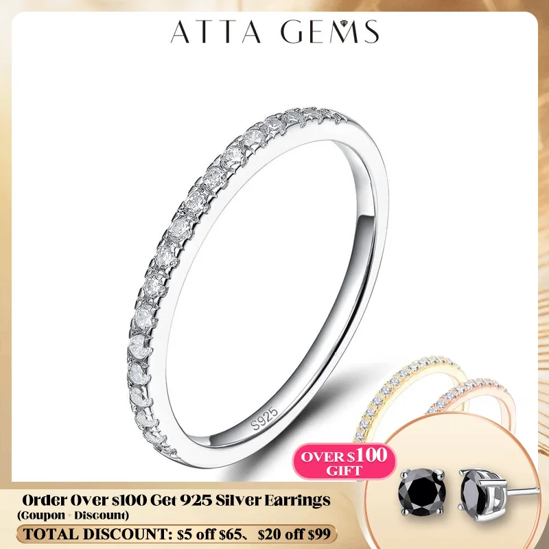 ATTAGEMS Classic White Gold Plated Round Excellent Cut Moissanite Ring for Girls 925 Sterling Silver Cocktail Fine Jewelry Gift