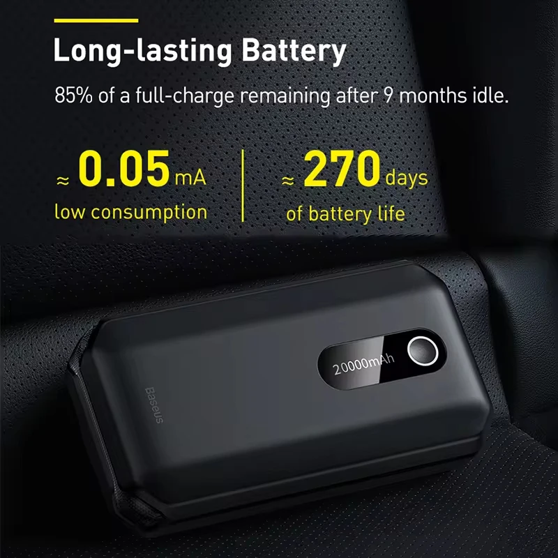 This jump starter keeps more than 85% battery after in standby mode for a year due to 0.05mAh of power consumption and long battery life.