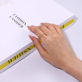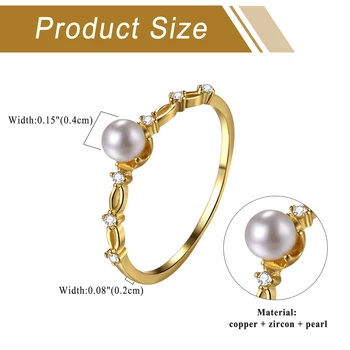 BONISKISS Gold-plated Pearl Women’s Ring with Zircon Stackable Ring Delicate and Elegant Compact Women’s Jewelry Holiday Gift