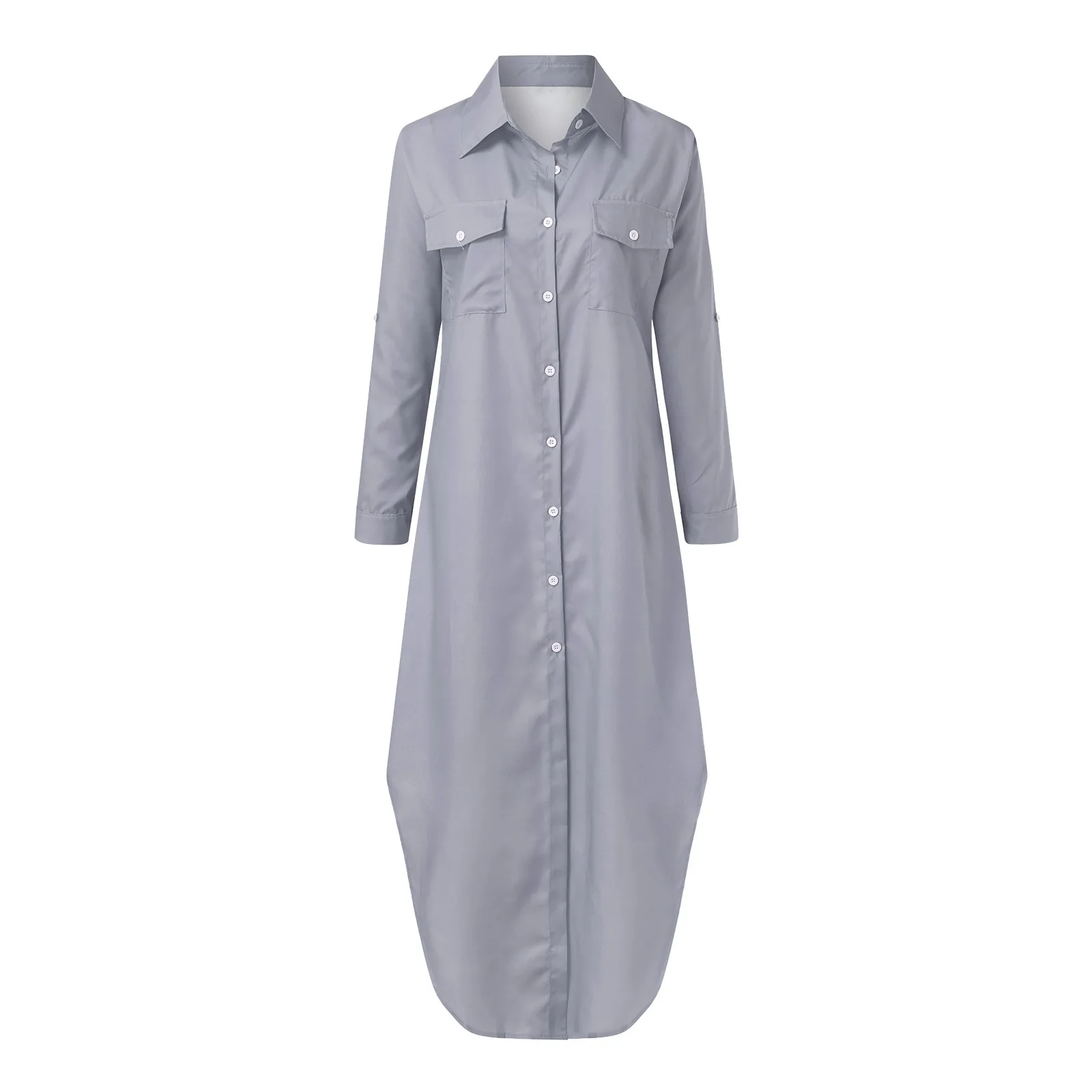 Women’s Fashion Lapel Buttons Sexy Slit Shirt Dress