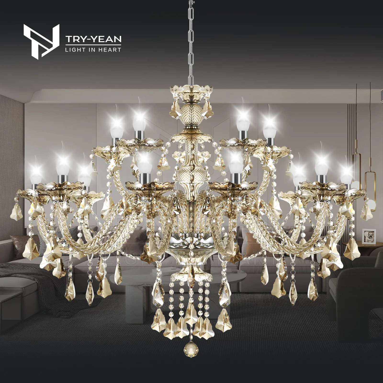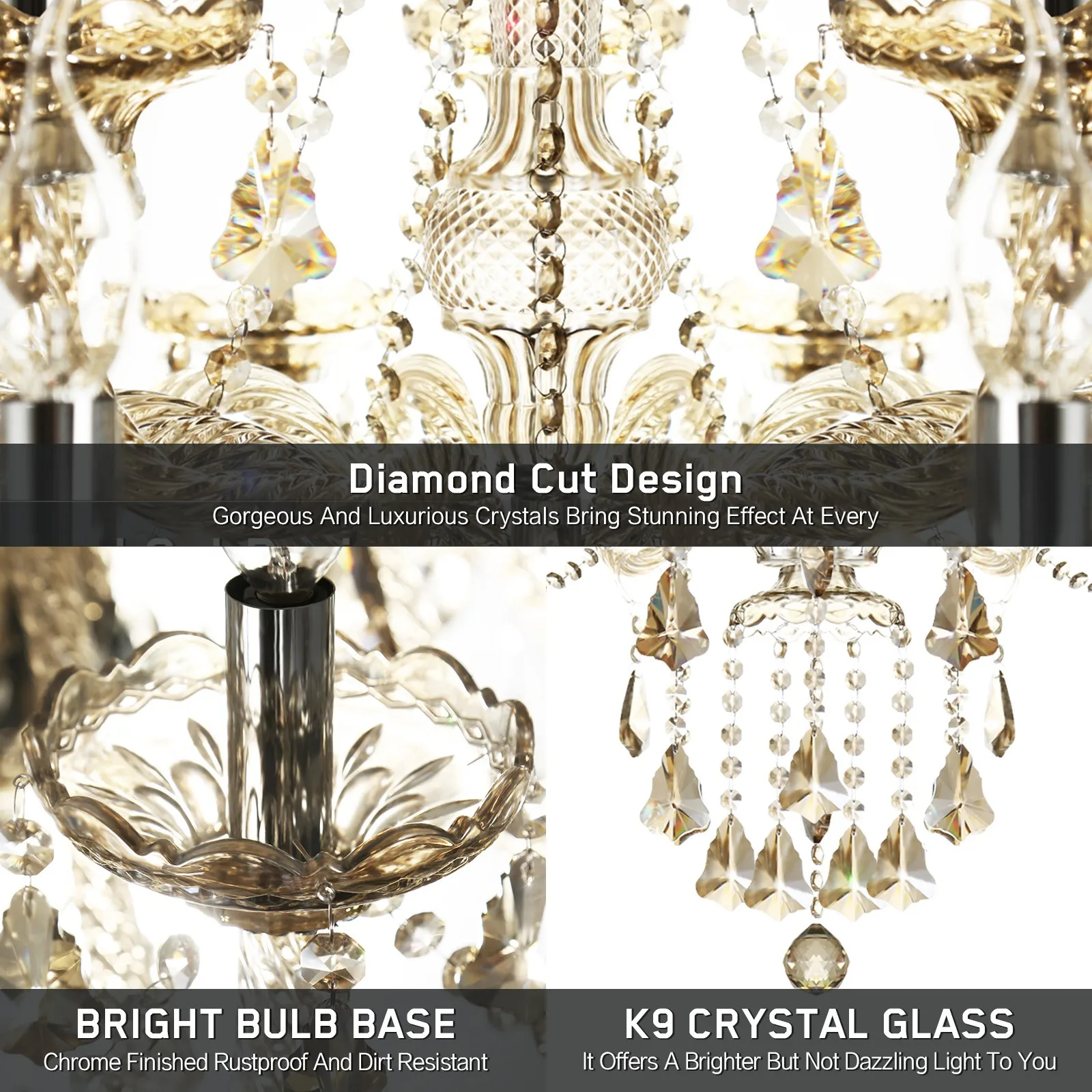 COGNAC CRYSTAL CHANDELIER CEILING LIGHT WITH 15 LIGHTS