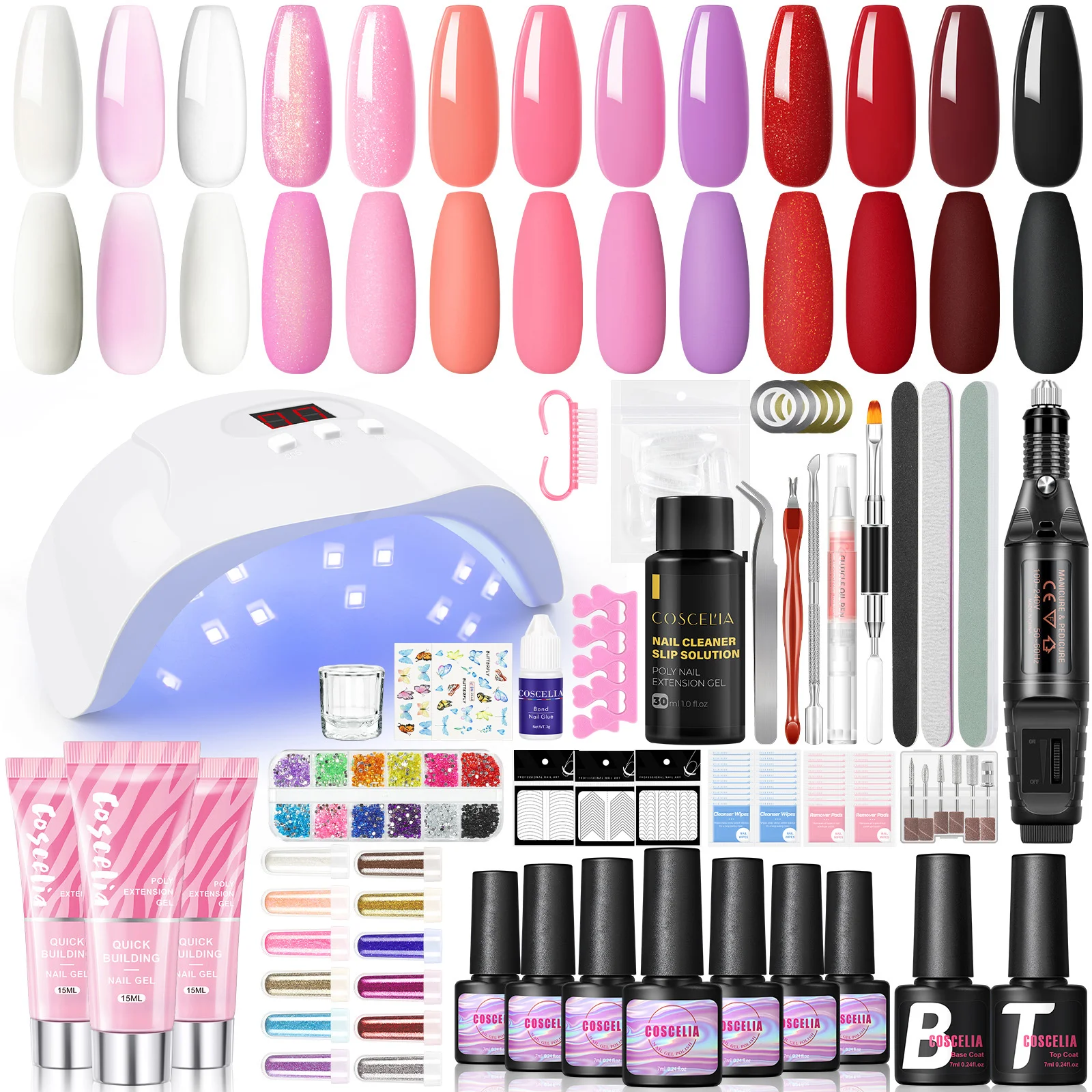 COSCELIA Gel Nail Polish Kit Complete 10pcs Gel Nail Polish 3PCS Poly Nail Gel with U V Light and Drill Starter Manicure Kit