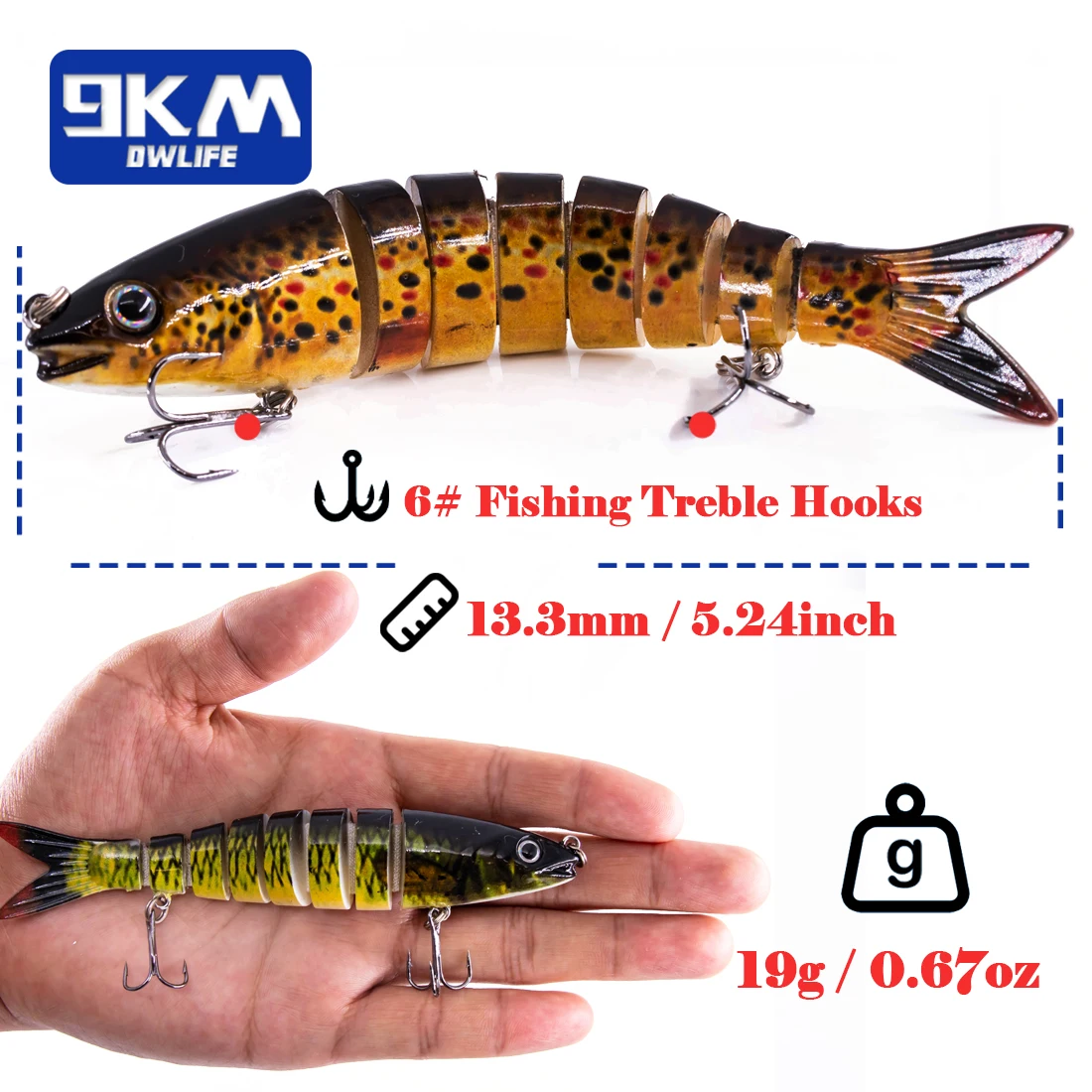 【Durable & Long Life Fishing Bait】Durable ABS plastic body, 8 segment multi-jointed body connected with strong woven fabirc. It can be reused many times without affecting the flexibility and verisimilitude of S-shaped swimming action.