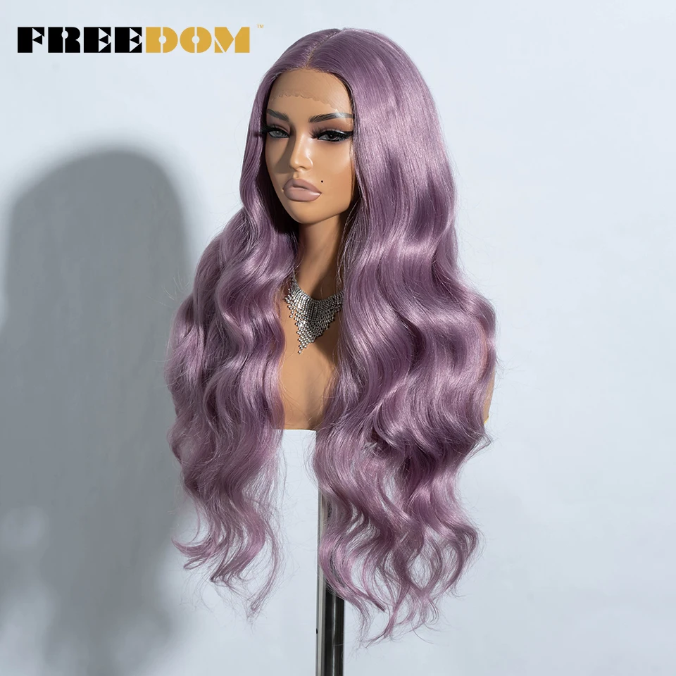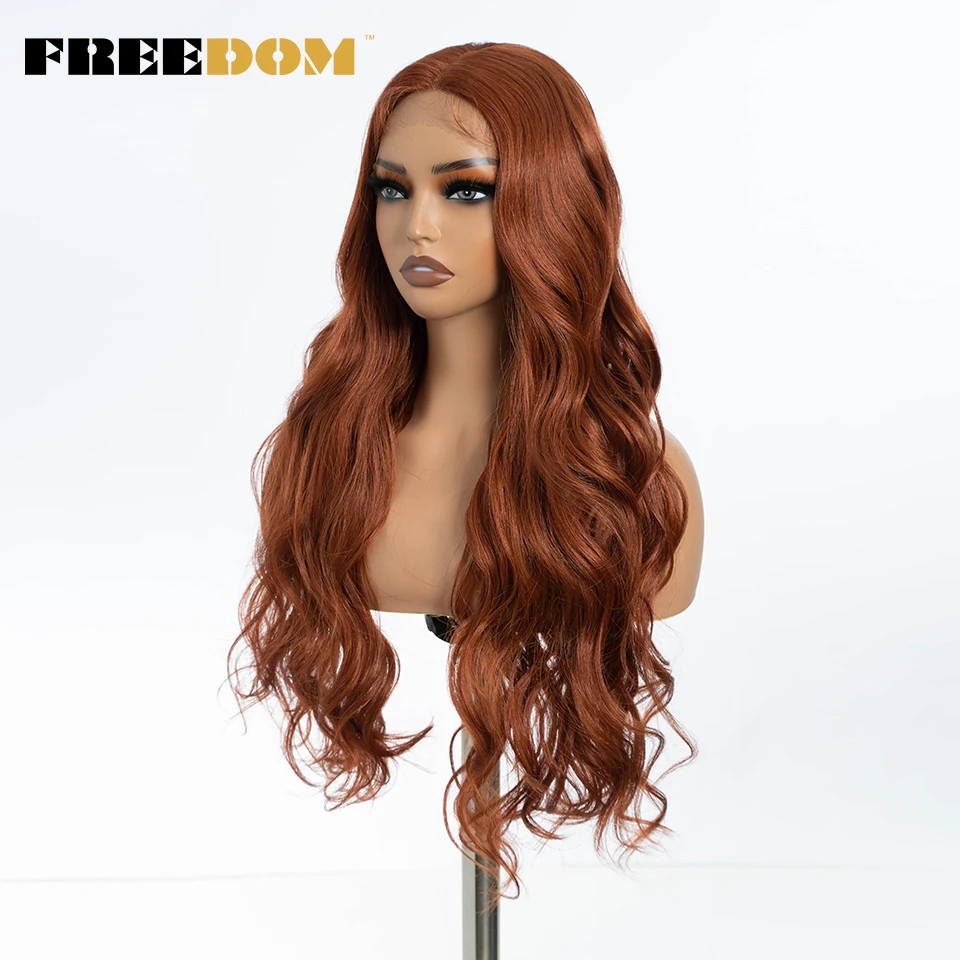 FREEDOM Synthetic Lace Front Wigs For Women Long Wavy 30″ Body Wavy Long T Part Lace Wig Ombre Blonde Ginger Blue Cosplay Wig