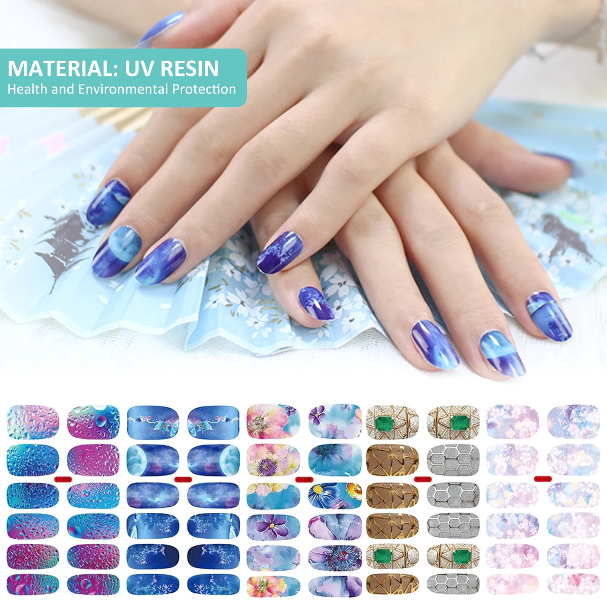 [Safe Material & Convenient to Use] Our nail stickers are made of UV resin material, no odor, safe to use, also suitable for most size of nails, beautiful and natural to stick on, convenient to use.