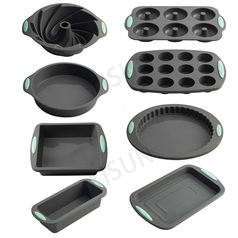 | feature | Heat resistant silicone loaf bread muffin donut cake baking tray oven baking pan silicone bakeware set Silicone Heritage Bundtlette Cake Mold For Fluted Tube Cake Making Baking Tools |