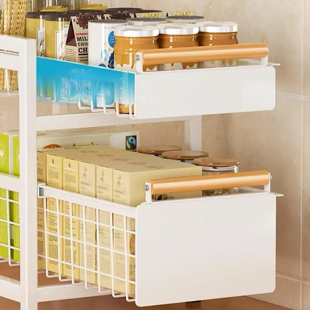 Kitchen Sink Storage Rack Sink Pull-Out Organizer Carbon Steel Bathroom Rack Layered Seasoning Storage Shelf Countertop Cabinet