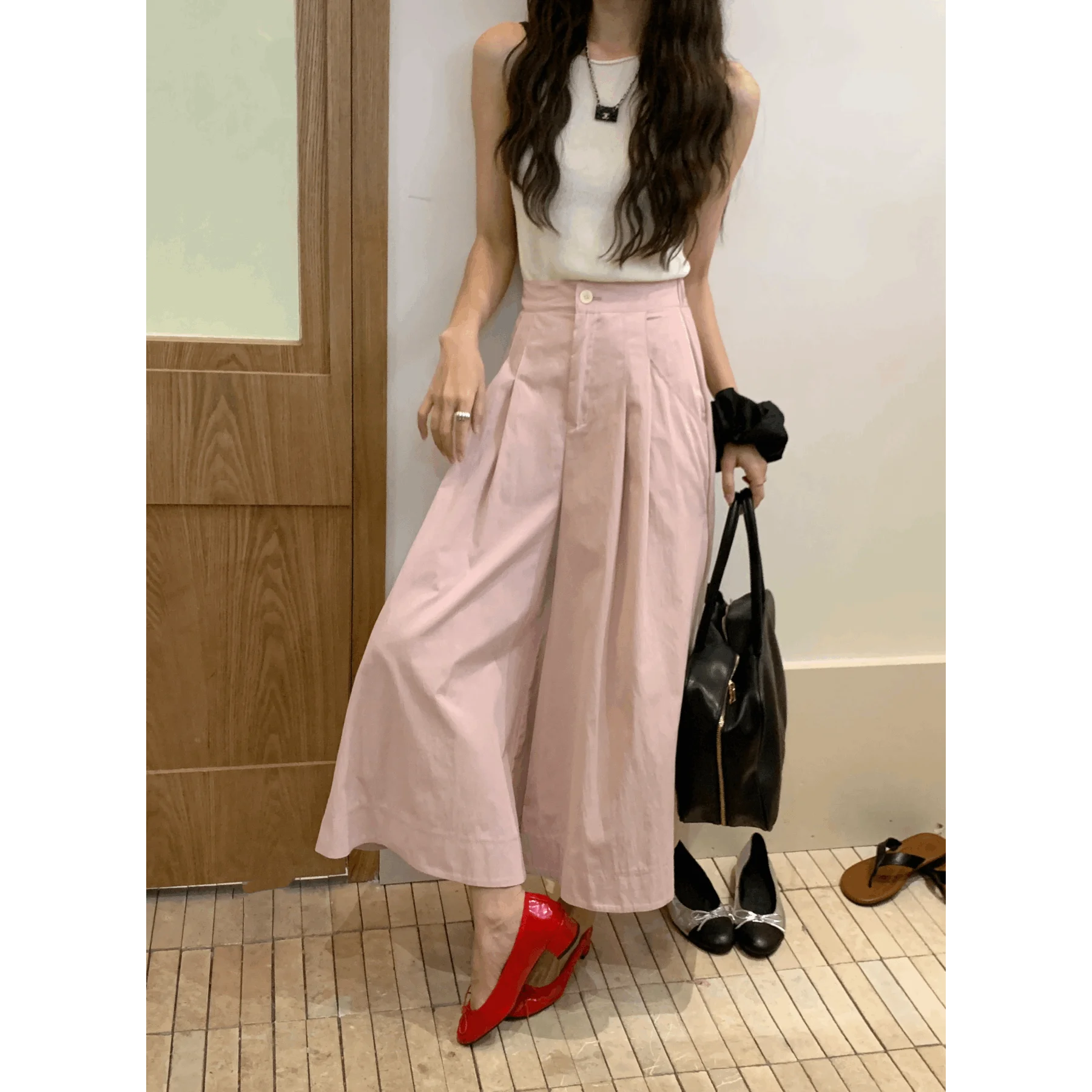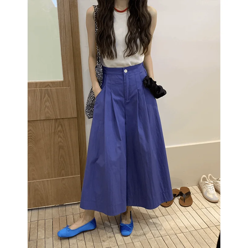 Korean Harajuku Style Hong Kong Style A-line Wide Leg Skirt Pants Women High Waisted Versatile Short 9-inch Shaped Casual Pants