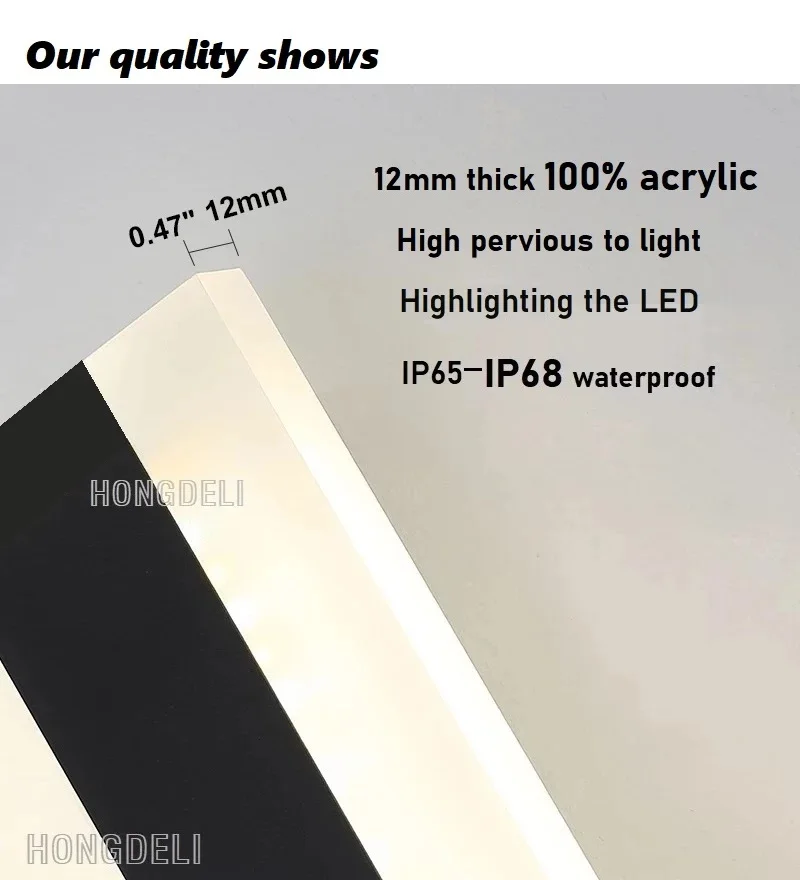 1.material: 12 mm thick 100% acrílico alto pervious ao material claro, high temperature metal shell of the lacquer that bake,IP65-IP68 fonte de alimentação impermeável de alto padrão, marca led