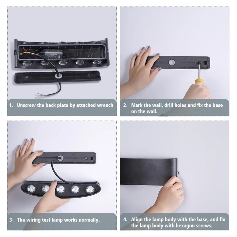 Note: The wall lamp has aluminum and plastic styles. Aluminum is waterproof and plastic is not waterproof.