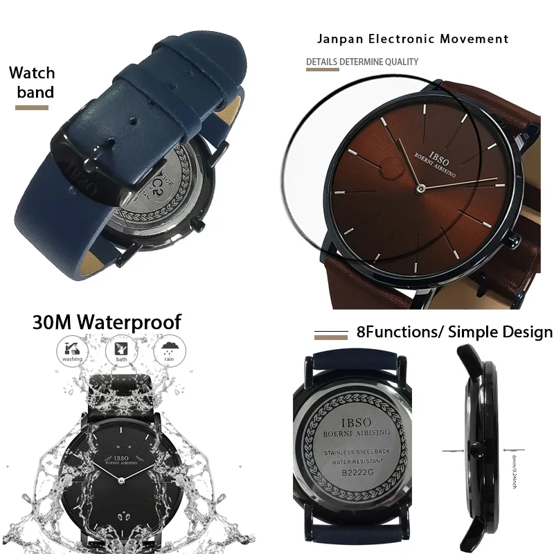 Brand Name: IBSO Casual Leather Quartz Watch Men office