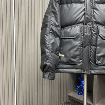 Men Hooded Down Jacket Streetwear Letter Print Stand Collar Outdoor Windbreak White Duck Down CoatThick Warm Workwear Clothes