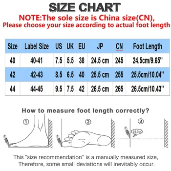 | Size:44 | Label Size:44-45 | US:9.5 | UK:7.5 | EU:42 | JP:26.5 cm | CN:265 | Foot Length:26.5cm/10.43” |