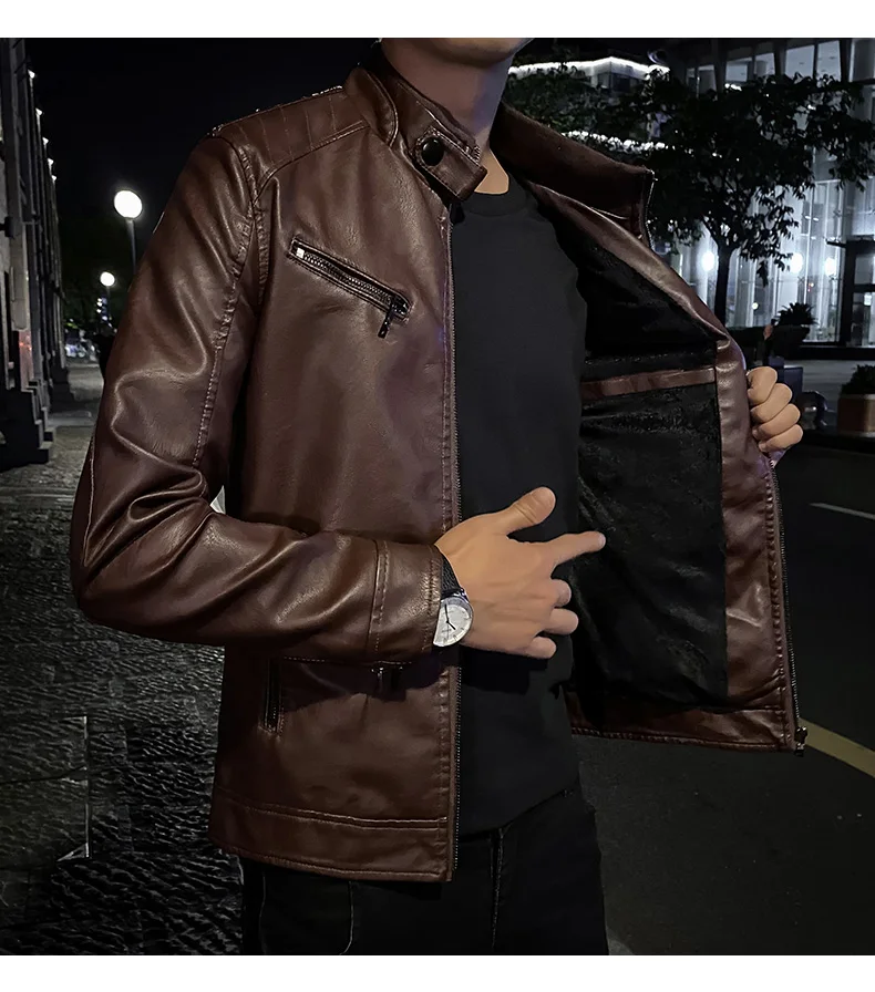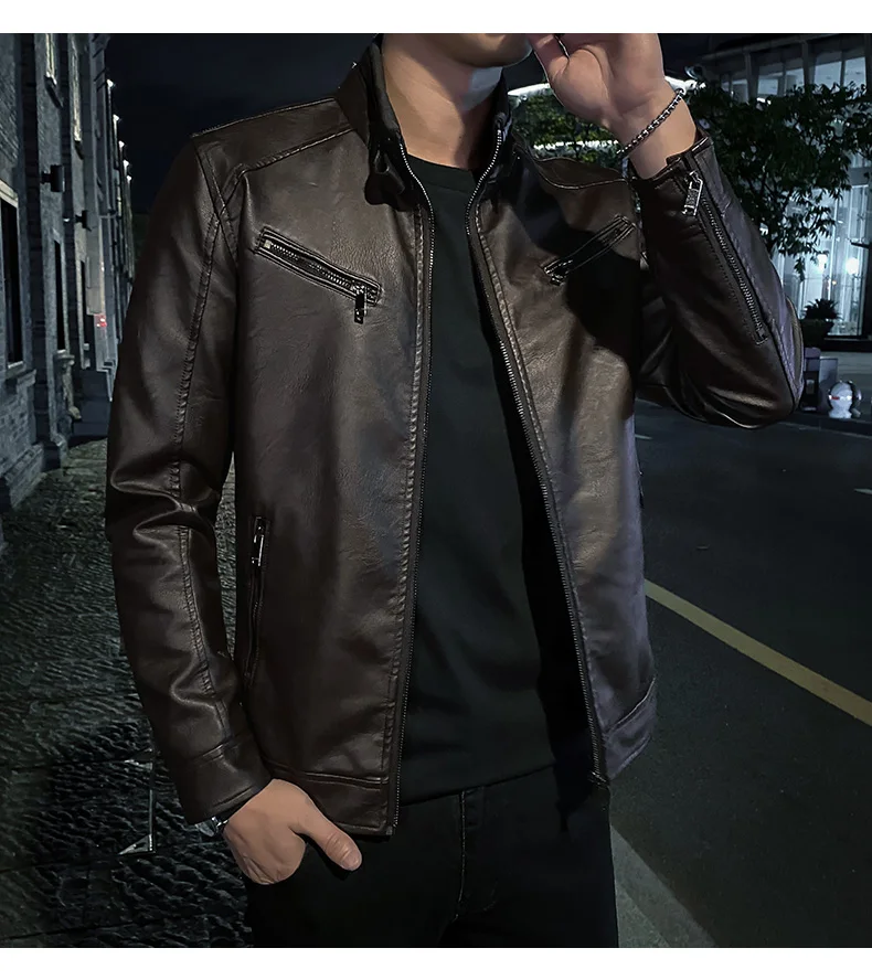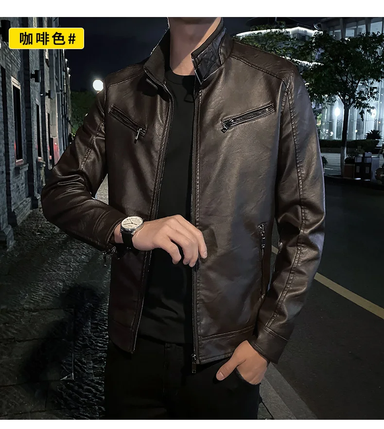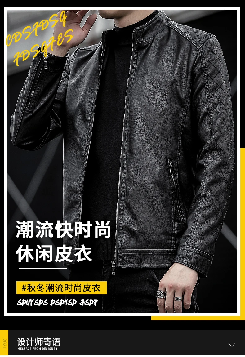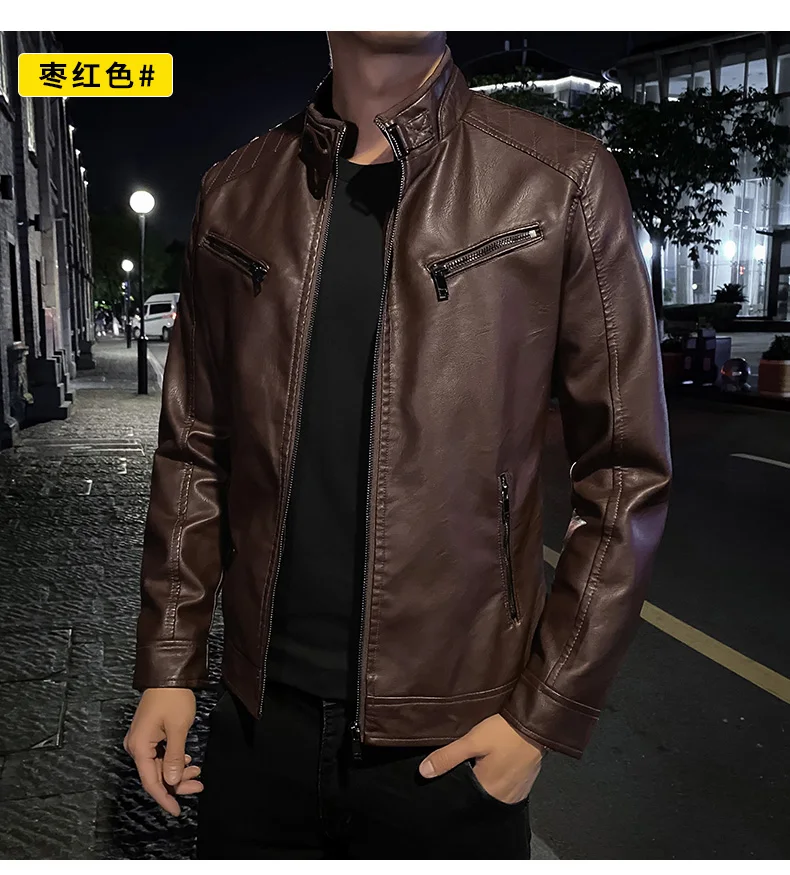 New styleMen’s fine leather coat handsome spring and autumn Korean version slim trend handsome autumn and winter plus velvet cat