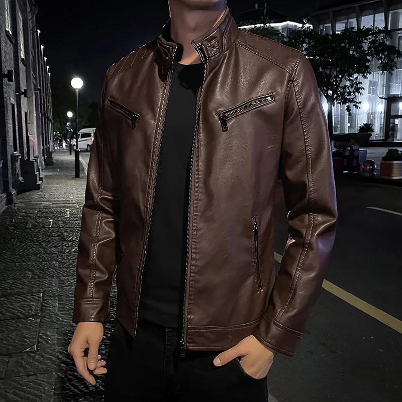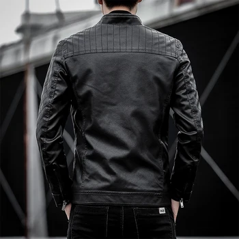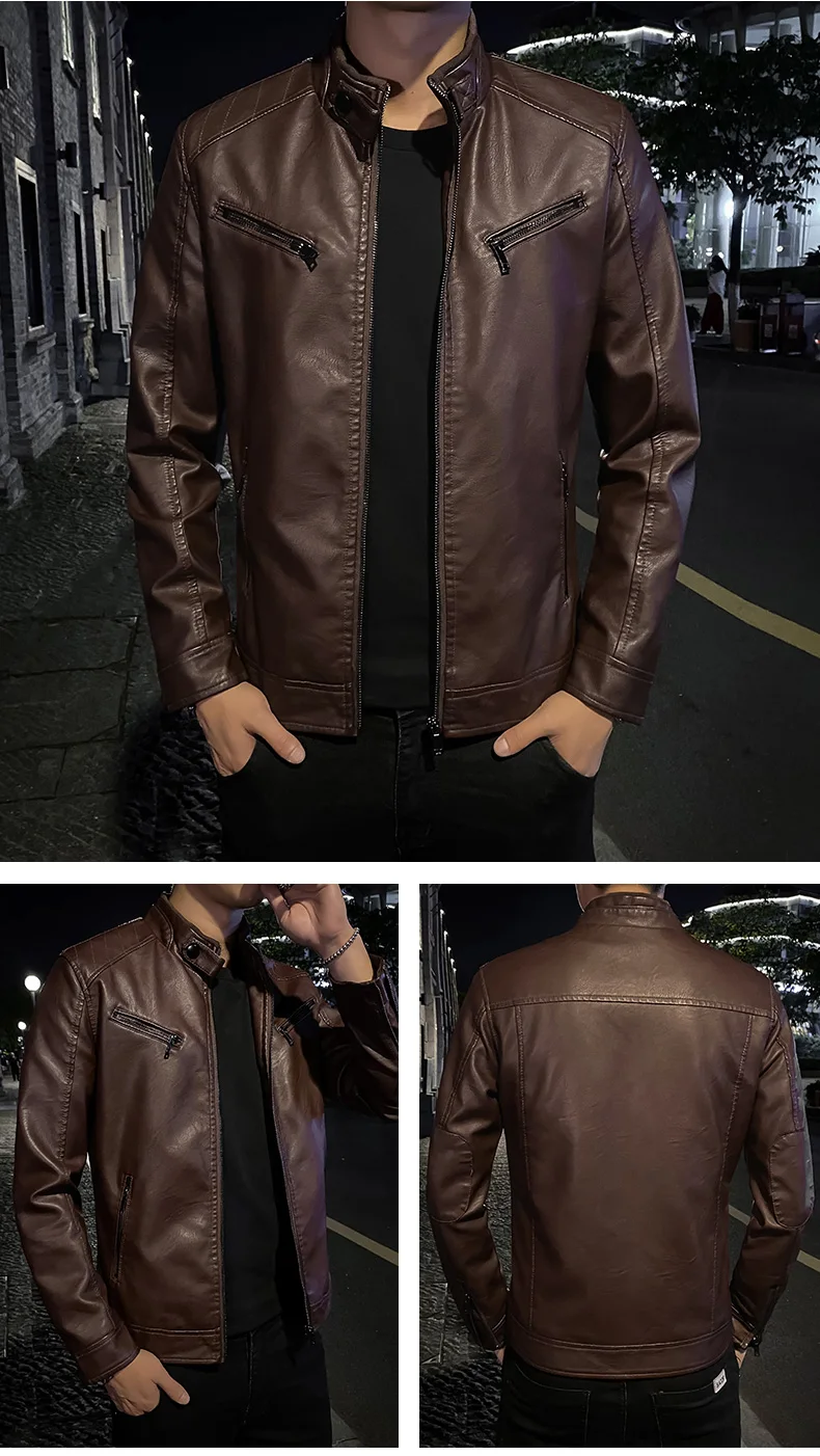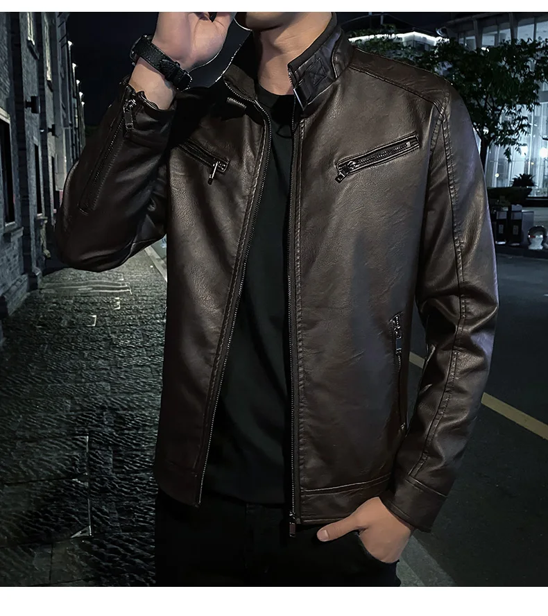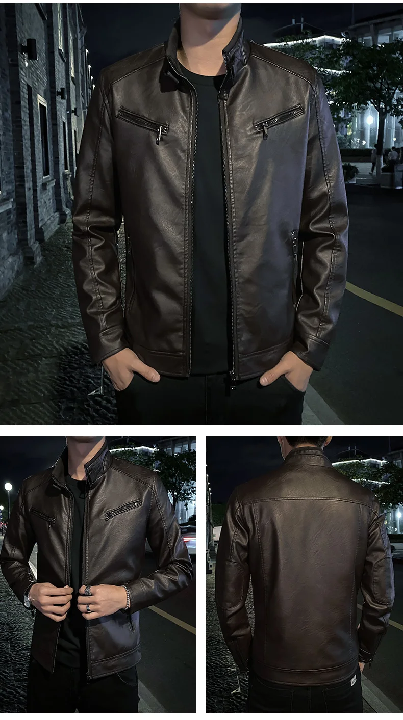 New styleMen’s fine leather coat handsome spring and autumn Korean version slim trend handsome autumn and winter plus velvet cat