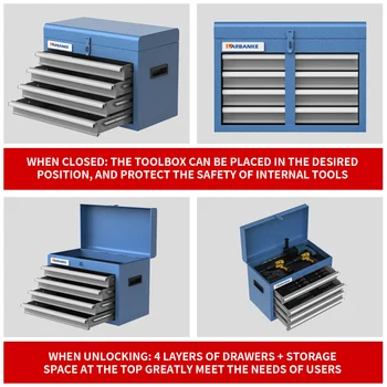 Portable Tool Box with4Drawers and Top Storage Tray,Tool Box Cabinet with Steel Safety Lock,Drawer Tool Box