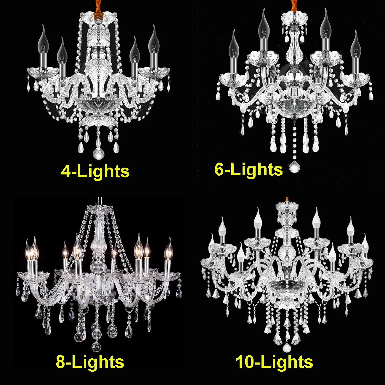Bulbs Requirement: This crystal ceiling lamp needs extra bulbs with E12 sockets (40W Max.). The bulbs can be incandescent, LED, CFL and halogen bulbs.