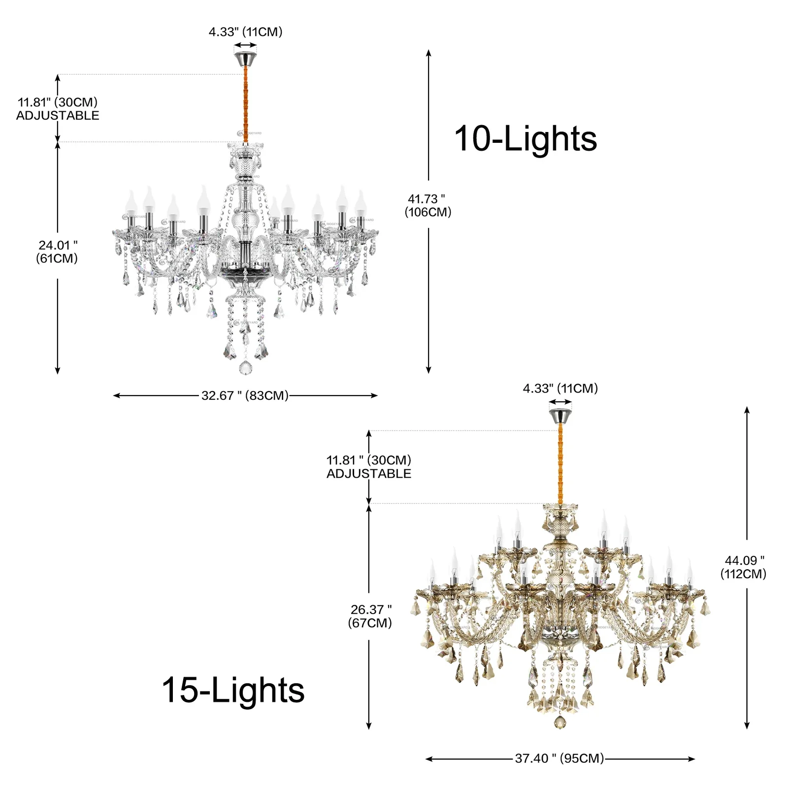 Light Width: 95cm/37.4”