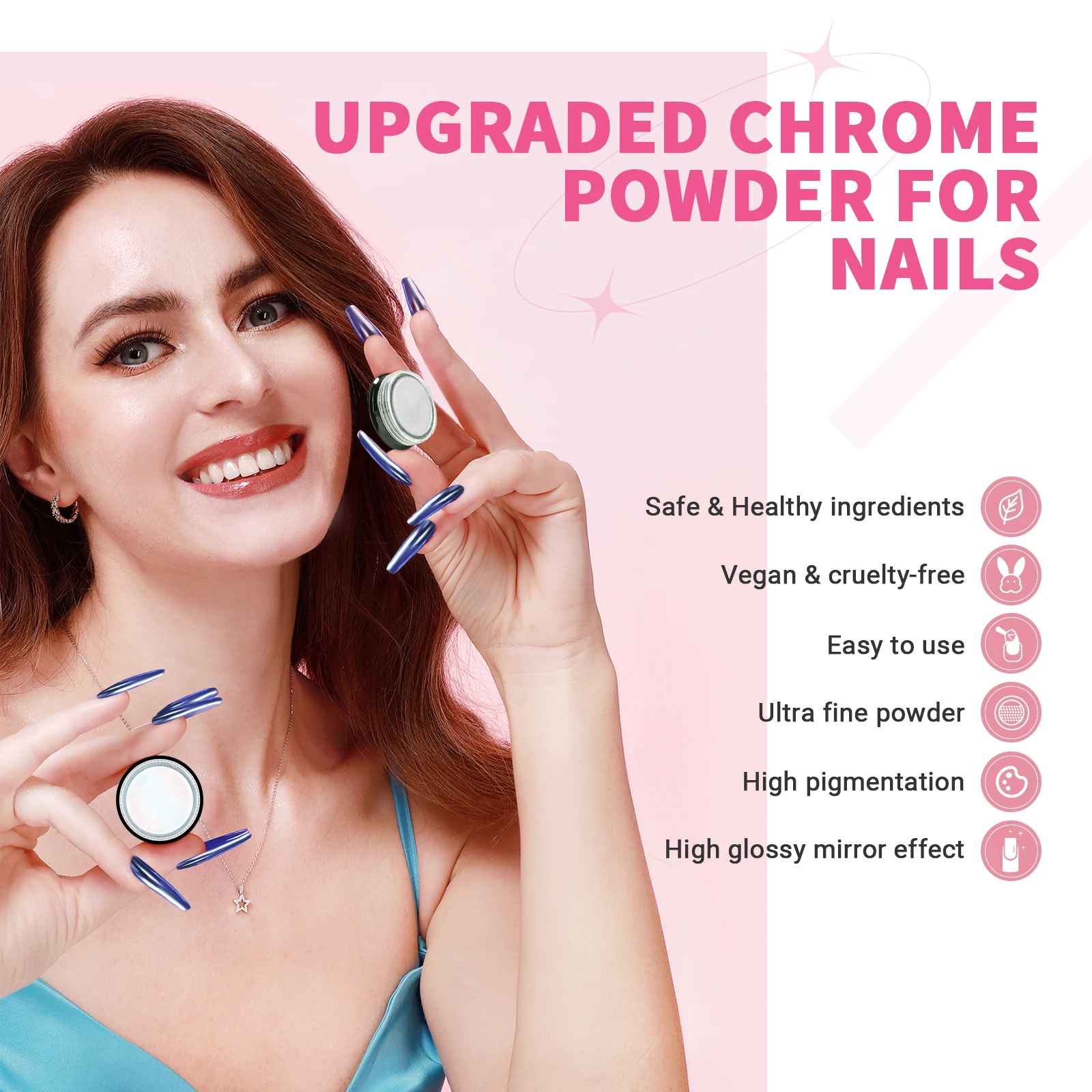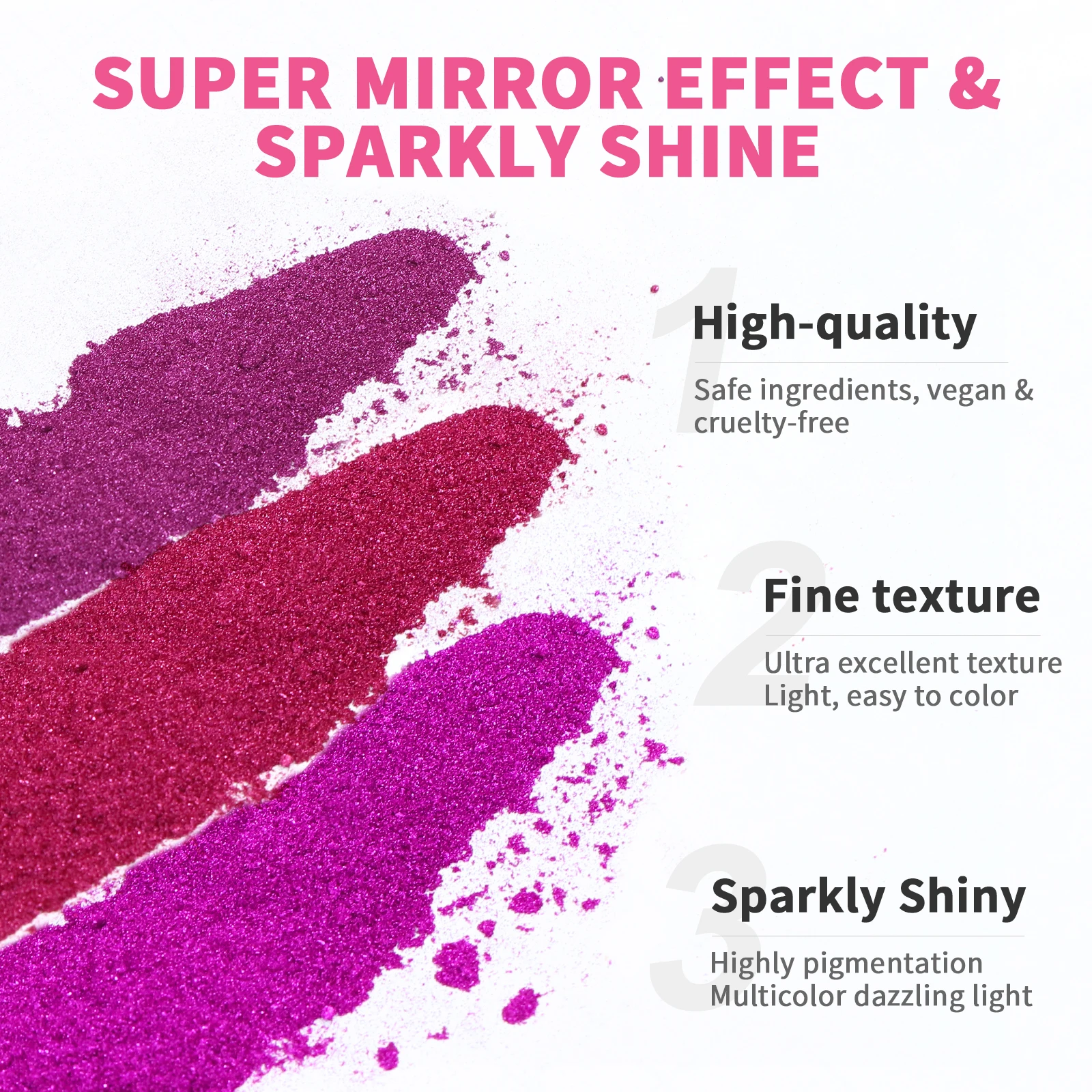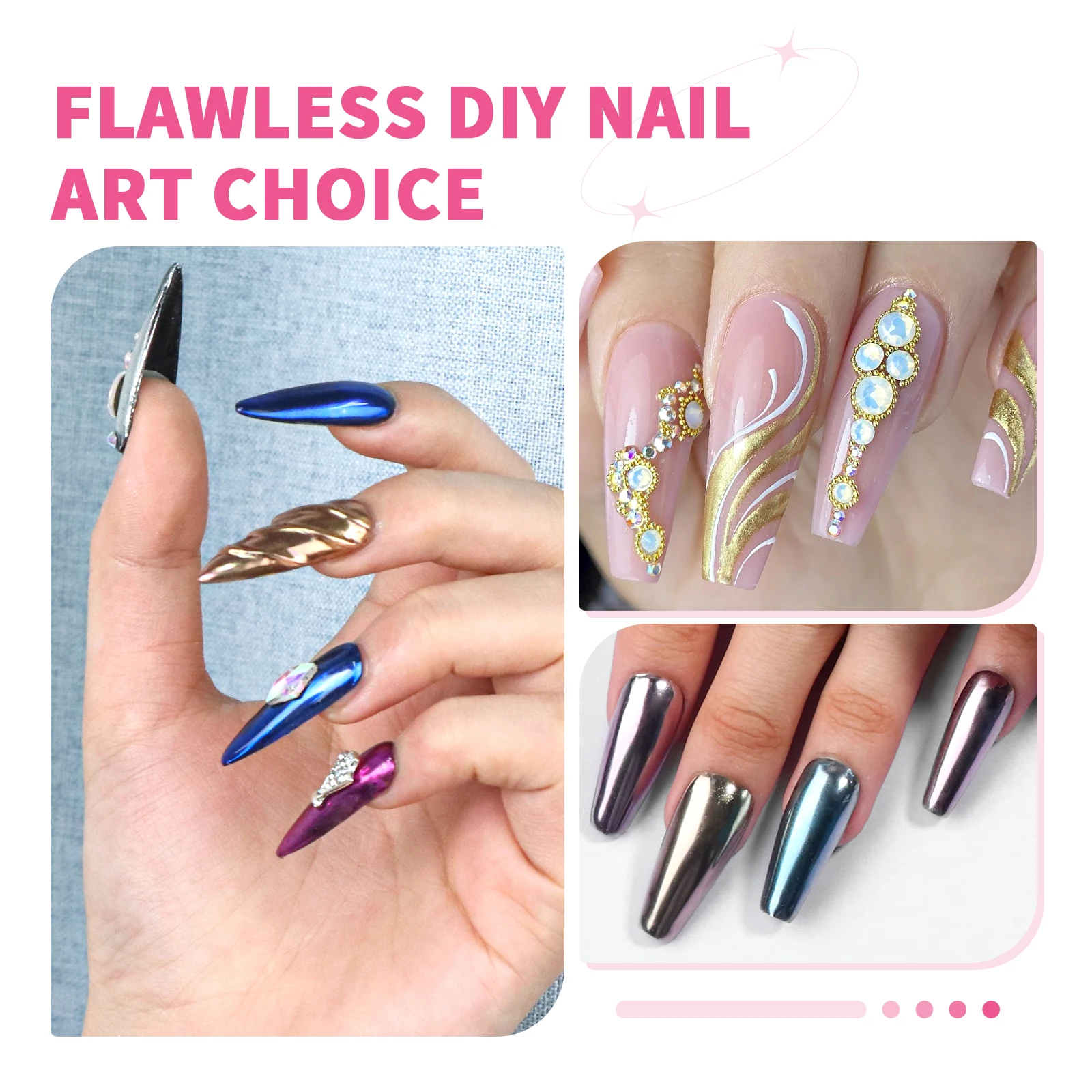 Saviland 48 Colors Chrome Nail Powder Set: Metallic Mirror Effect Chrome Nail Powder for Gel Polish Aurora Holographic Silver Gold Nail Chrome Powder for Gel Nails Art Decoration & French Manicure DIY