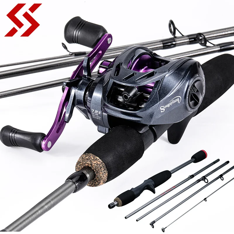 Sougayilang 5 Sections 170CM Lure Fishing Rod and 8+1BBBaitcasting Reel Combo Carbon Fiber Fishing Rod Travel Fishing Set Pesca