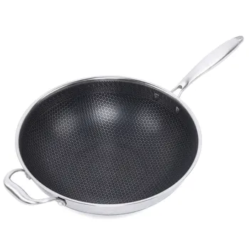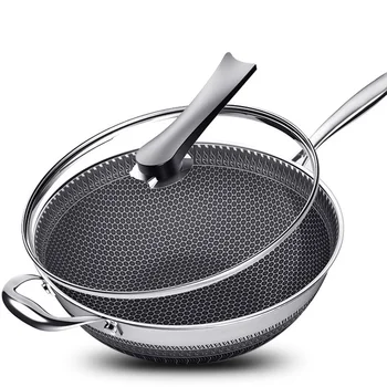Non Stick Double Sided Screen Honeycomb Wok Stainless Steel Kitchen Frying Pan