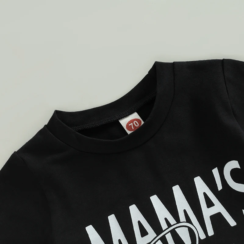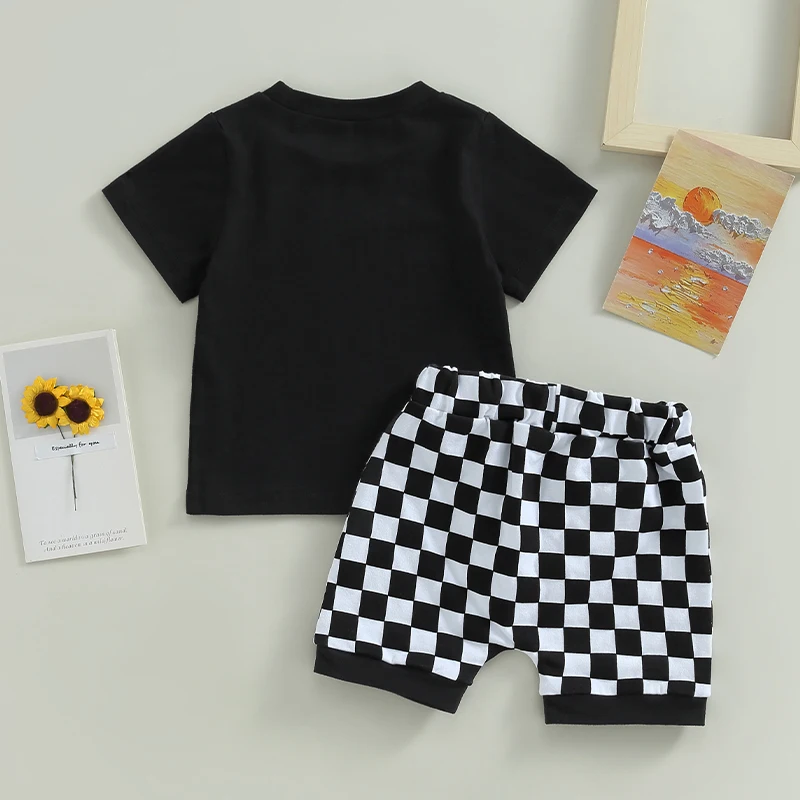 Letter printing, round neck, short sleeves, T-shirt for baby boy. Track shorts in a checkerboard print and an elastic waistband for a comfortable and secure fit.