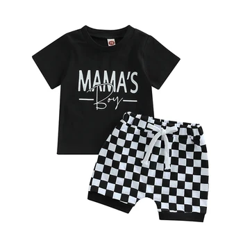 Baby Boys Clothing Set Letter Print Short Sleeve T-Shirt and Elastic Checkerboard Print Shorts Summer Outfits