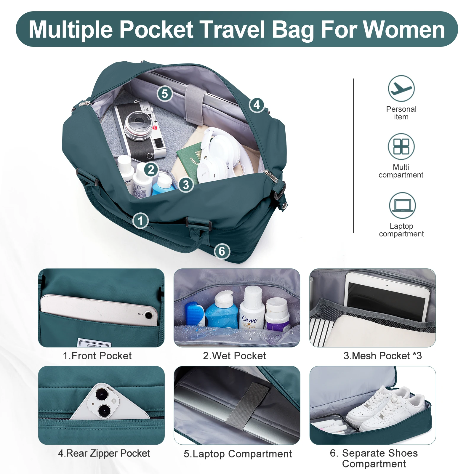 Travel Duffle Bag, Gym Weekender Bags for Women with Shoe Compartment, Large Hospital Carry on Overnight Bag with Toiletry Bag