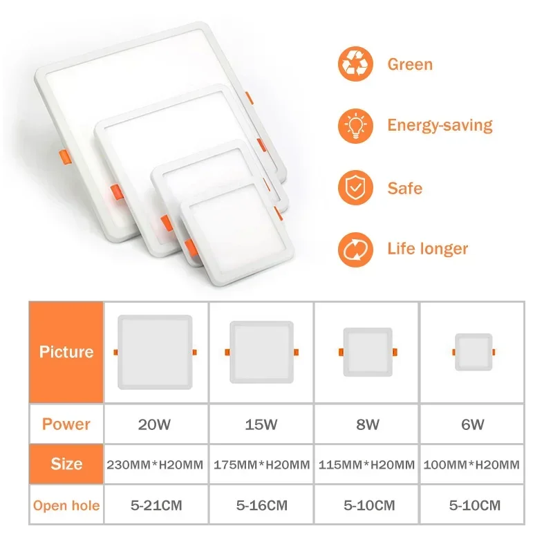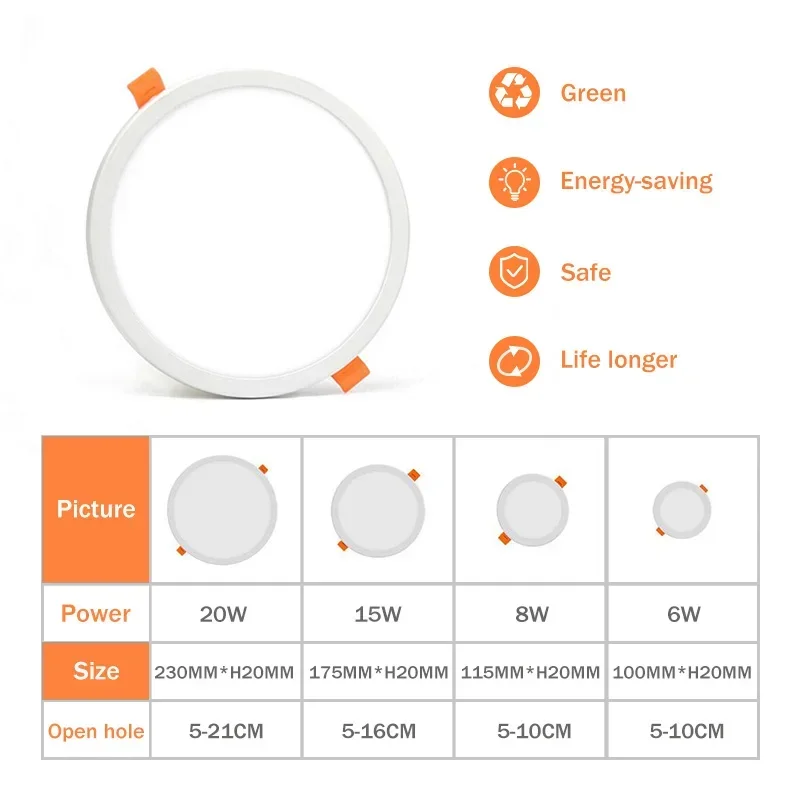 Ultra Thin Led Ceiling Light LED Downlight 6W 8W 15W 20W Panel Lights LED Ceiling Recessed Light For Living Room Indoor Lighting