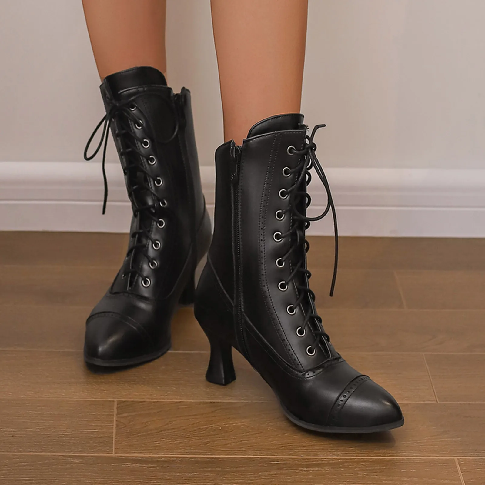 Design: Women’s vintage mid-calf boots typically feature a classic and style, with the height reaching between the ankle and the calf, neither too high nor too low.