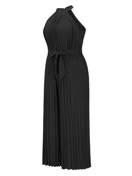 Women’s Suit Sleeveless Bandage Pleated Wide-Leg Jumpsuit