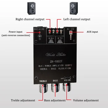 Bluetooth-compatible audio amplifier module 2.0 dual-channel stereo output, maximum output power 2X100W